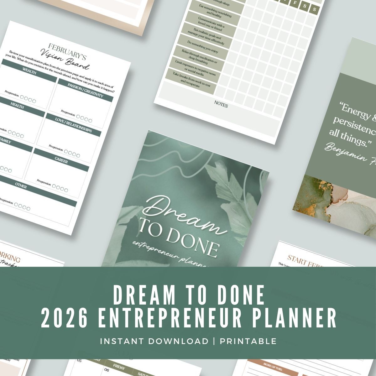 The ‘Dream to Done’ 2026 Entrepreneur Downloadable Planner